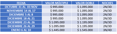 ● Alimentación: Desayuno y cena por noche de alojamiento. Ingresan con cena y salen con desayuno.