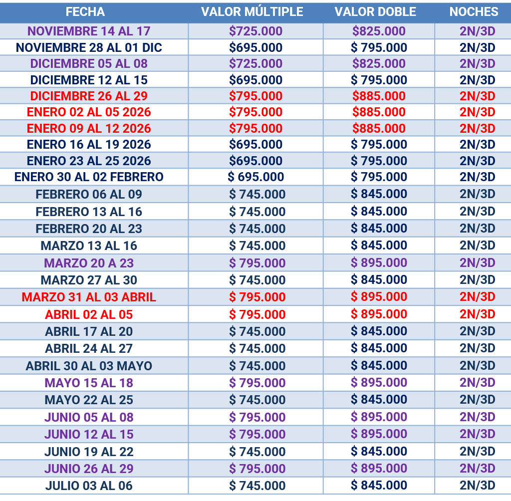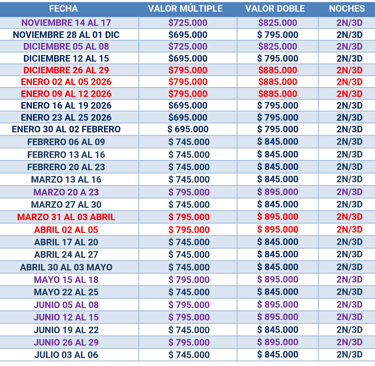 Se reserva el derecho de hacer cambios en cualquier servicio ofrecido dentro de este programa cuando lo considere necesario, con el único propósito de garantizar el éxito de la operación. (ITINERARIO SUJETO A CAMBIOS).